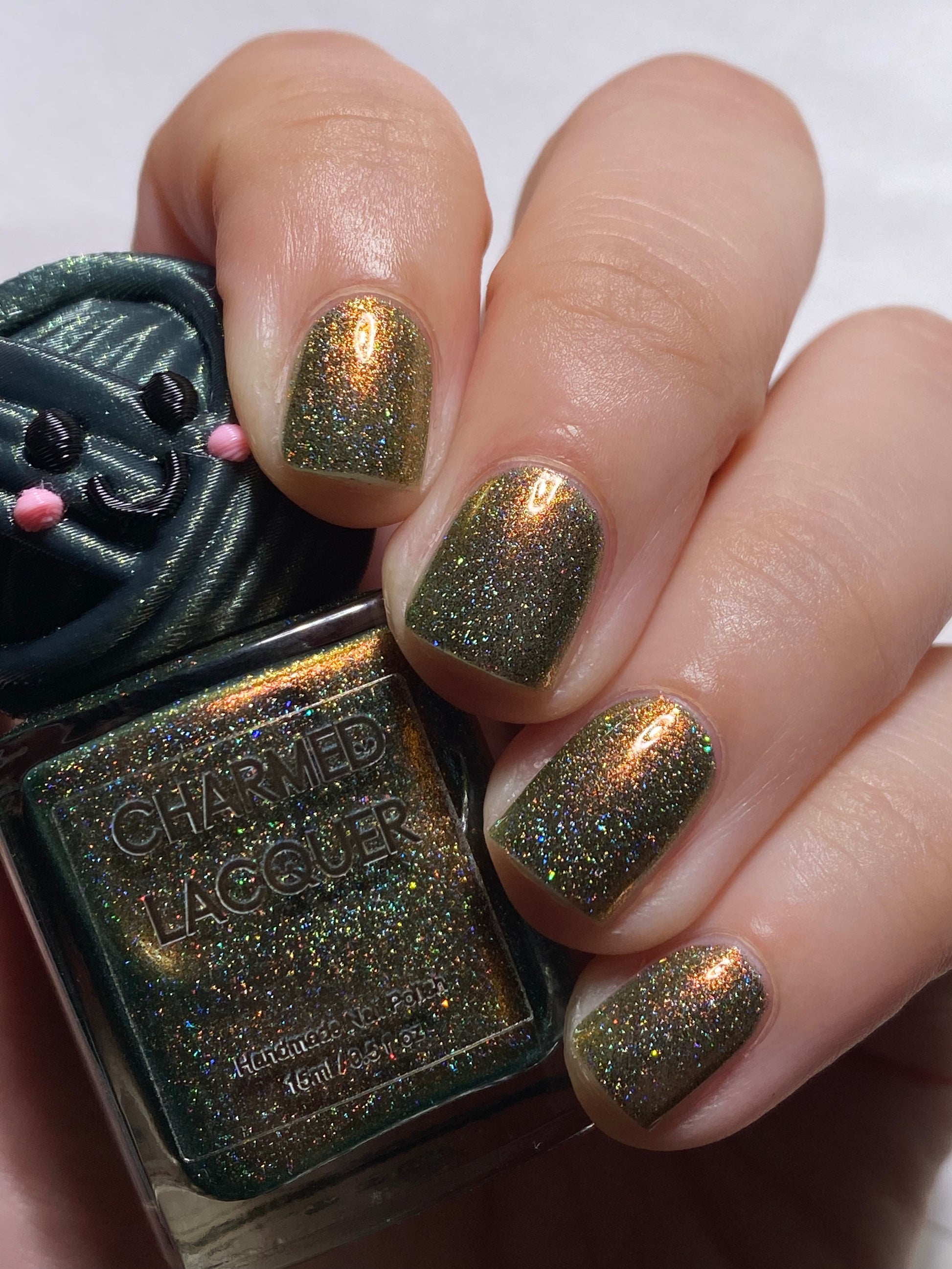 Crafty Skeins - a shimmery green base polish with a strong golden shimmer and a touch of holo dust.