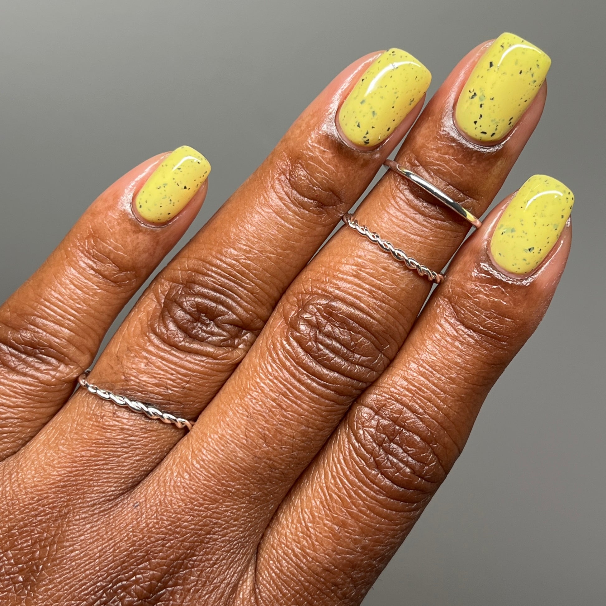 Butyl Acetate, Ethyl Acetate, Nitrocellulose, Adipic Acid, Neopentyl Glycol, Trimellitic, Anhydride Copolymer, Acetyl Tributyl Citrate, Isopropyl Alcohol, Acrylates Copolymer, Stearalkonium Bentonite, n-Butyl Alcohol, Benzophenone-1, Silica, Aluminum, Trimethylpentanediyl Dibenzoate, Polyvinyl Butyral, Styrene/Acrylates Copolymer,Polyethylene Terephthalate, Polybutylene terephthalate, Ethylene/YA Copolymer