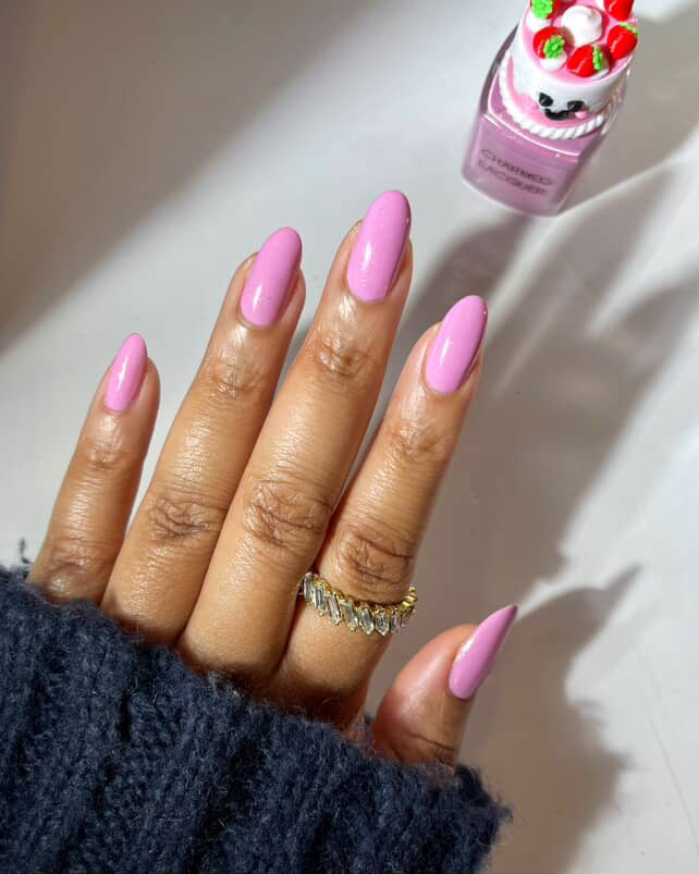 One Sweet Year - strawberry milk pink with gold shimmer