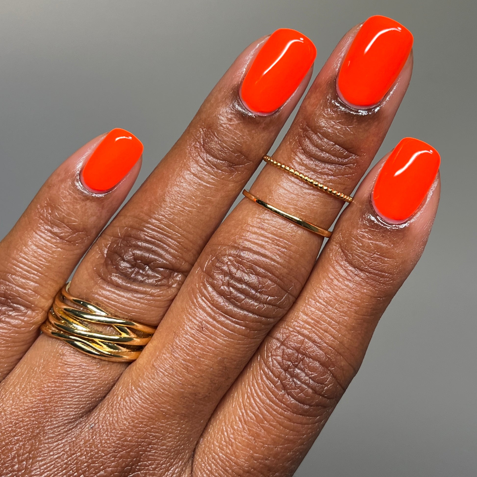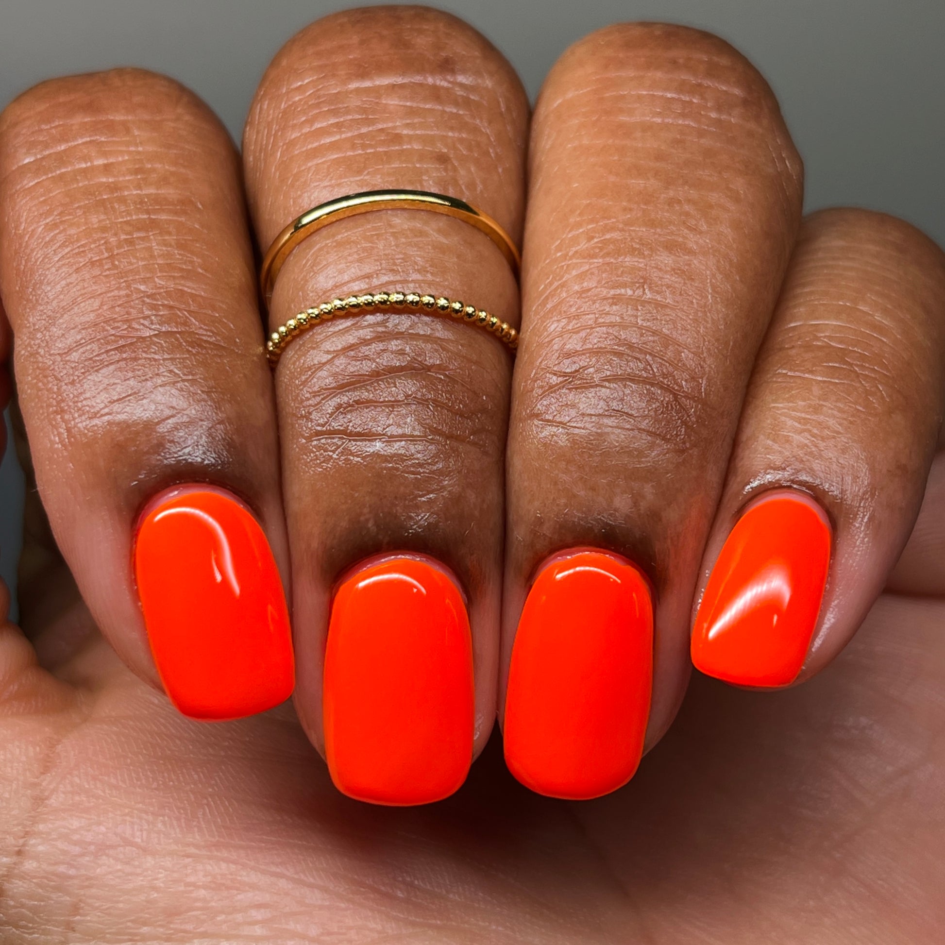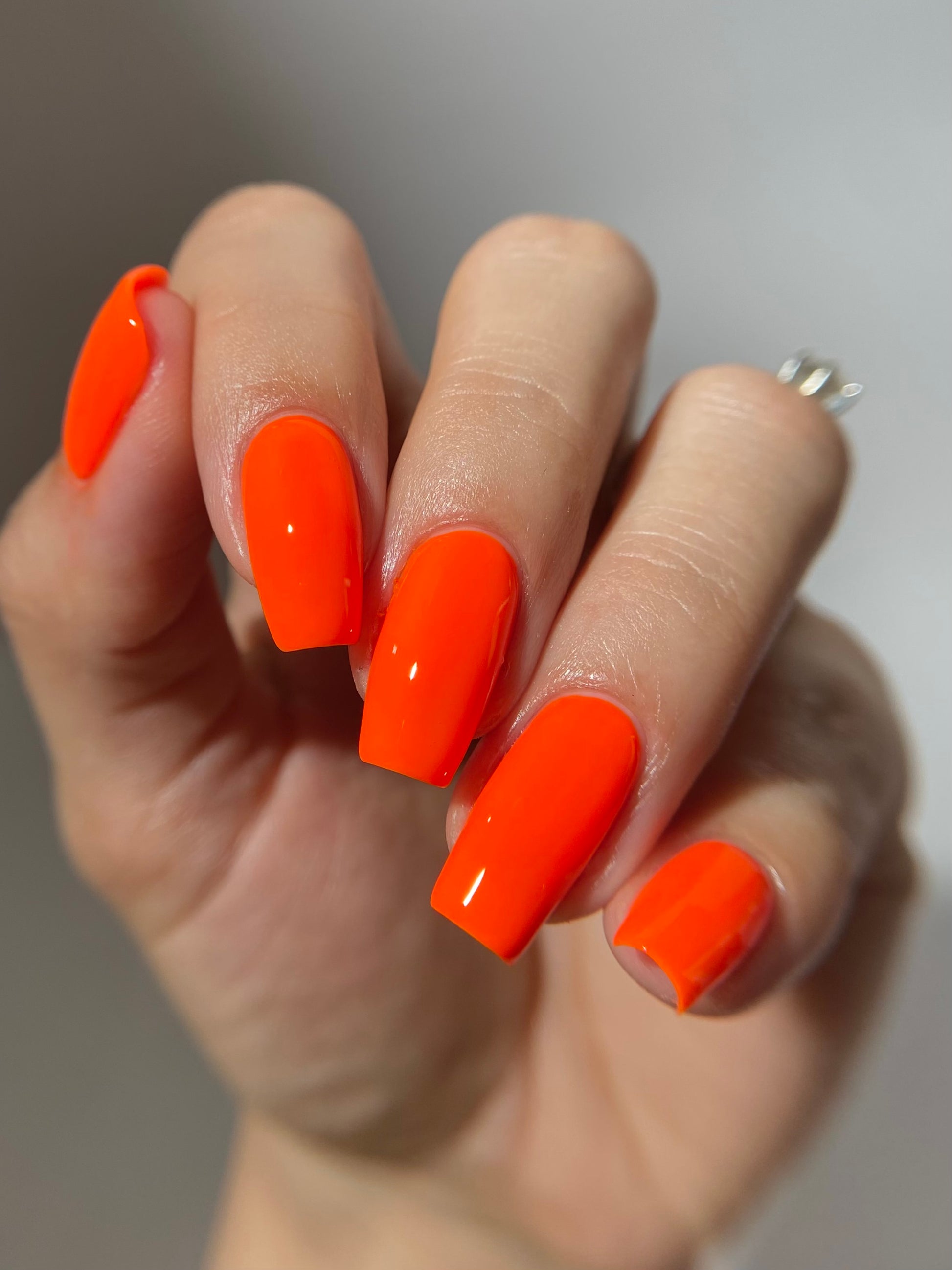 A bright orange neon cream.